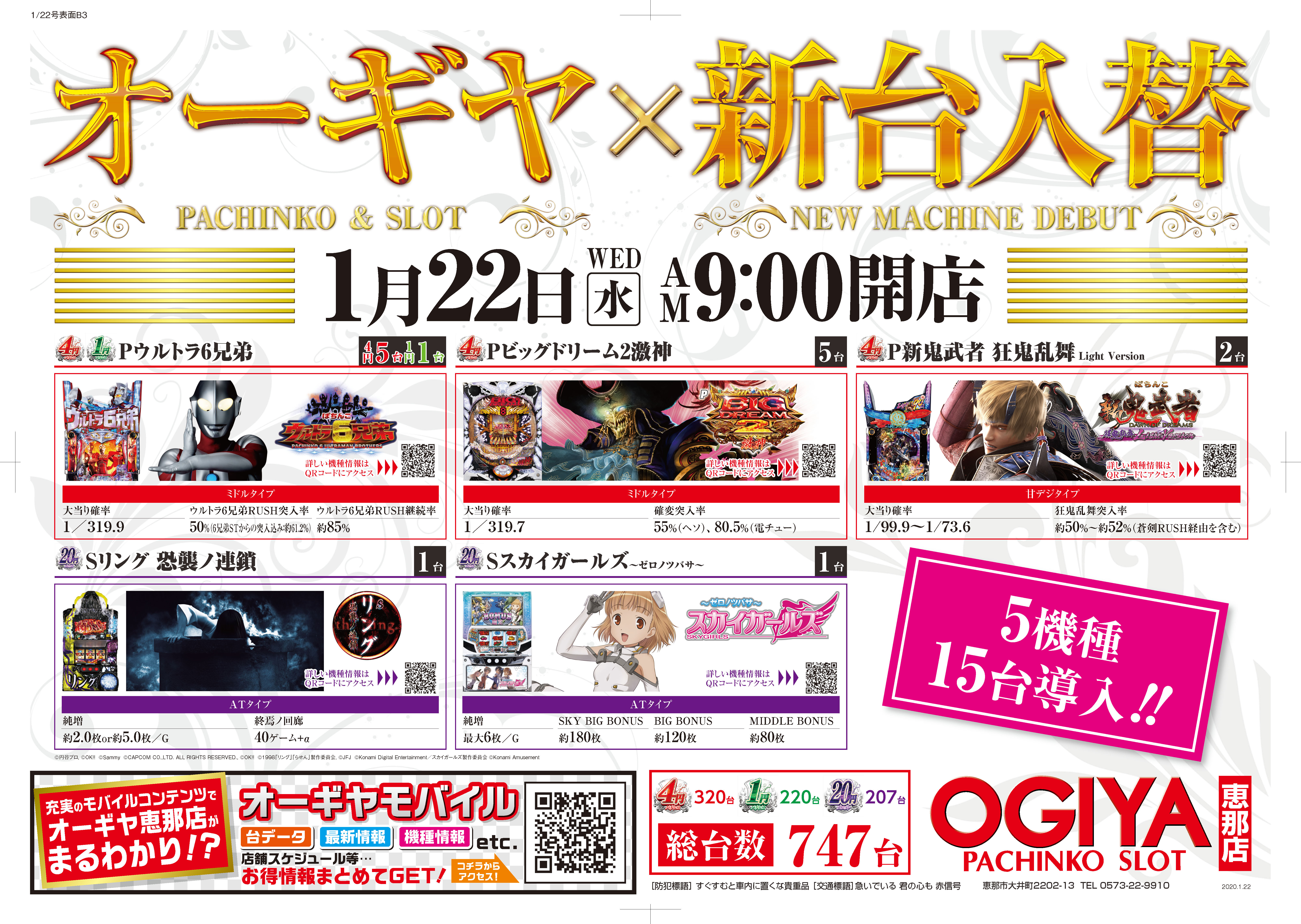 1月20日に開放した新台は